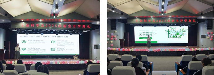 “选择生命科学,就是选择与自然对话、与未来同行。”在介绍50net永乐高时,刘金玲书记从院系发展历程、师资队伍建设、专业特色优势等方面展开,生动展现了50net永乐高“以科研促教学、以实践育人才”的育人理念。她提到,50net永乐高拥有一支高学历、高职称的教师团队,建有省重点实验室等省级平台4个、市级实验室5个,为学生提供从课堂学习到科研实践的全链条培养。“希望同学们以专业为基础,保持对生命科学的好奇心与探索欲,在生科系的平台上绽放潜能。”